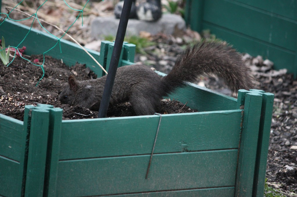 The squirrels are very avid gardeners. And now that the snow is gone, they’ve set themselves to building up their caches again.