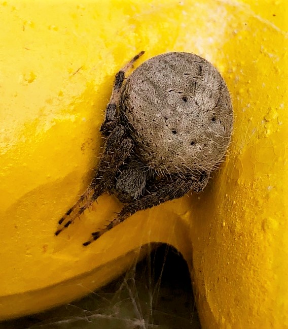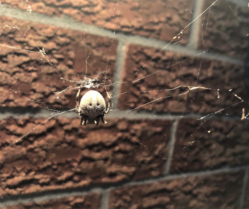 With the lighting, it was tricky to get pictures, but I managed some decent ones. Again, the lighting made if difficult to determine her colouring, but I was pretty sure she was a Grey Cross Orb Weaver. I needed to get a better look at her in the daylight.