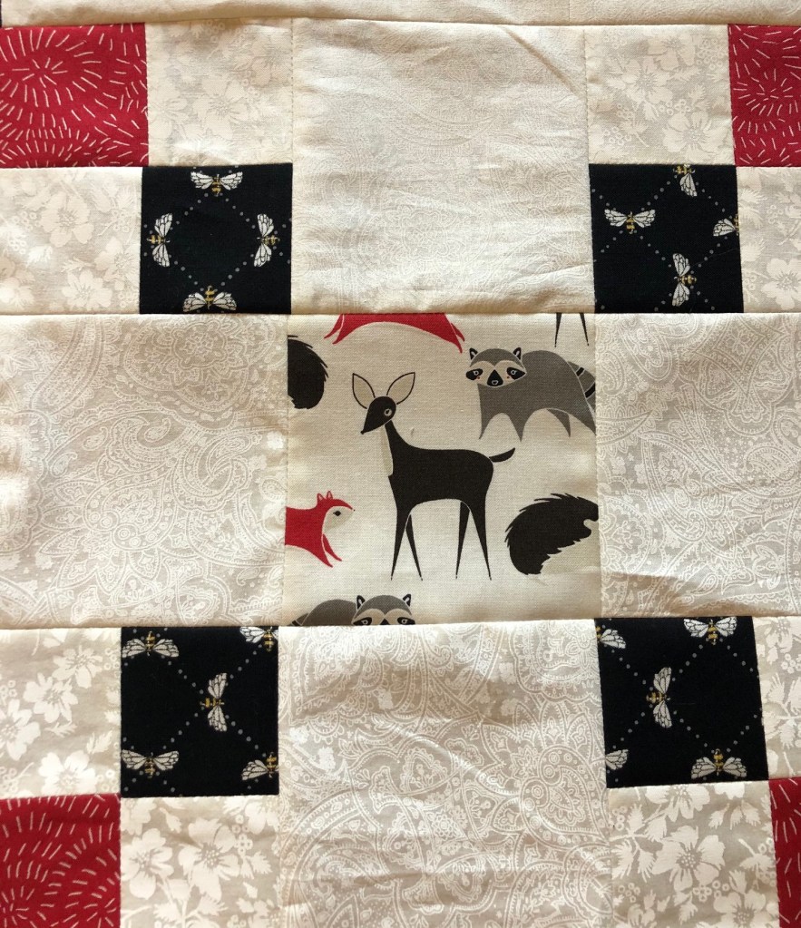 And one of the pieces I snagged from Mom’s stash (top) is perfect for the binding!
