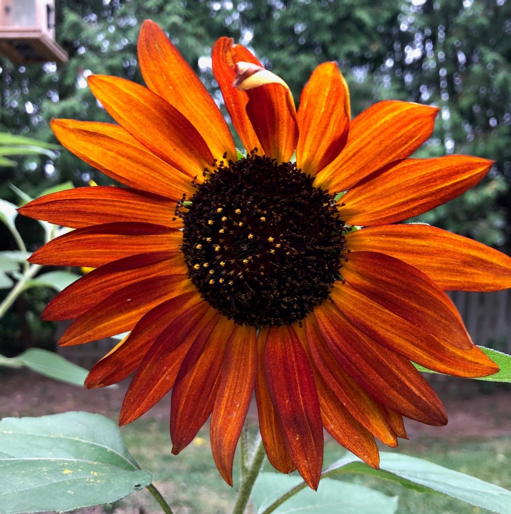 What absolutely beautiful flowers! The colors just scream fall to me and I love all the yellow, orange and red blooms. What a great view you have when you look outside.