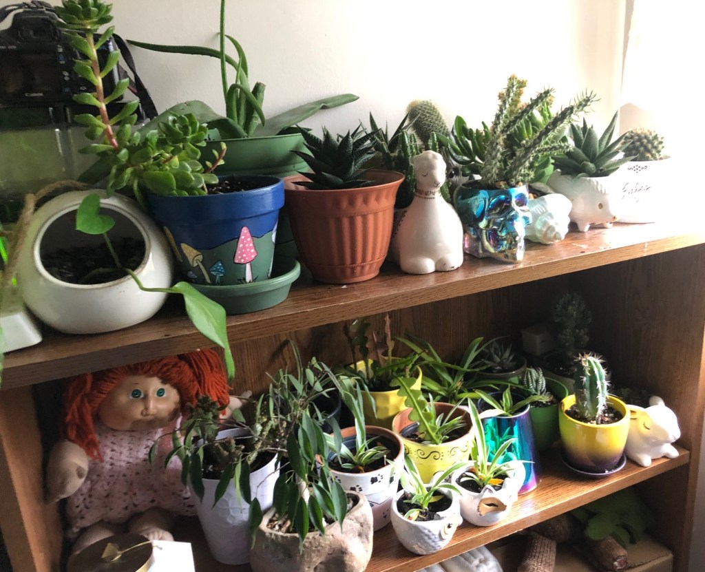 And I’m afraid my plant collection probably doubled this summer. That’s in part because the local convenience store kept bringing in sad little cacti, and everytime I stopped to get lottery tickets, I had to rescue them. And of course, being outside means my spider plants spit our babies like crazy… and I can’t just throw them out!