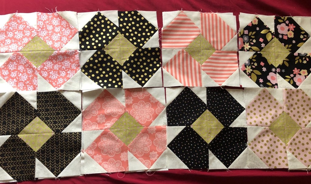 So I got to sewing…. the dizzy daisy blocks are perfect for chain piecing. It took me no time at all to get them together.