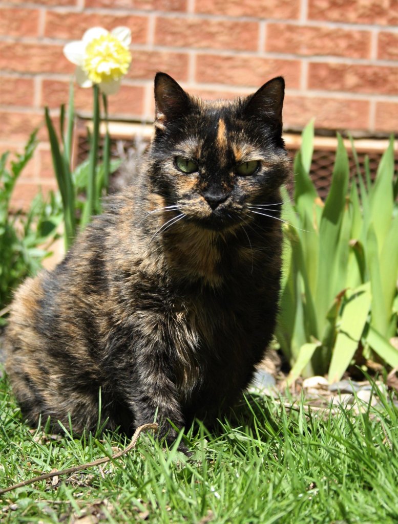 It took a several years for her to get comfortable with going outside, but eventually she got up the courage. She spent many days in the garden with us, munching on grass and soaking up the sun, before going back inside on her own, and having a nap.