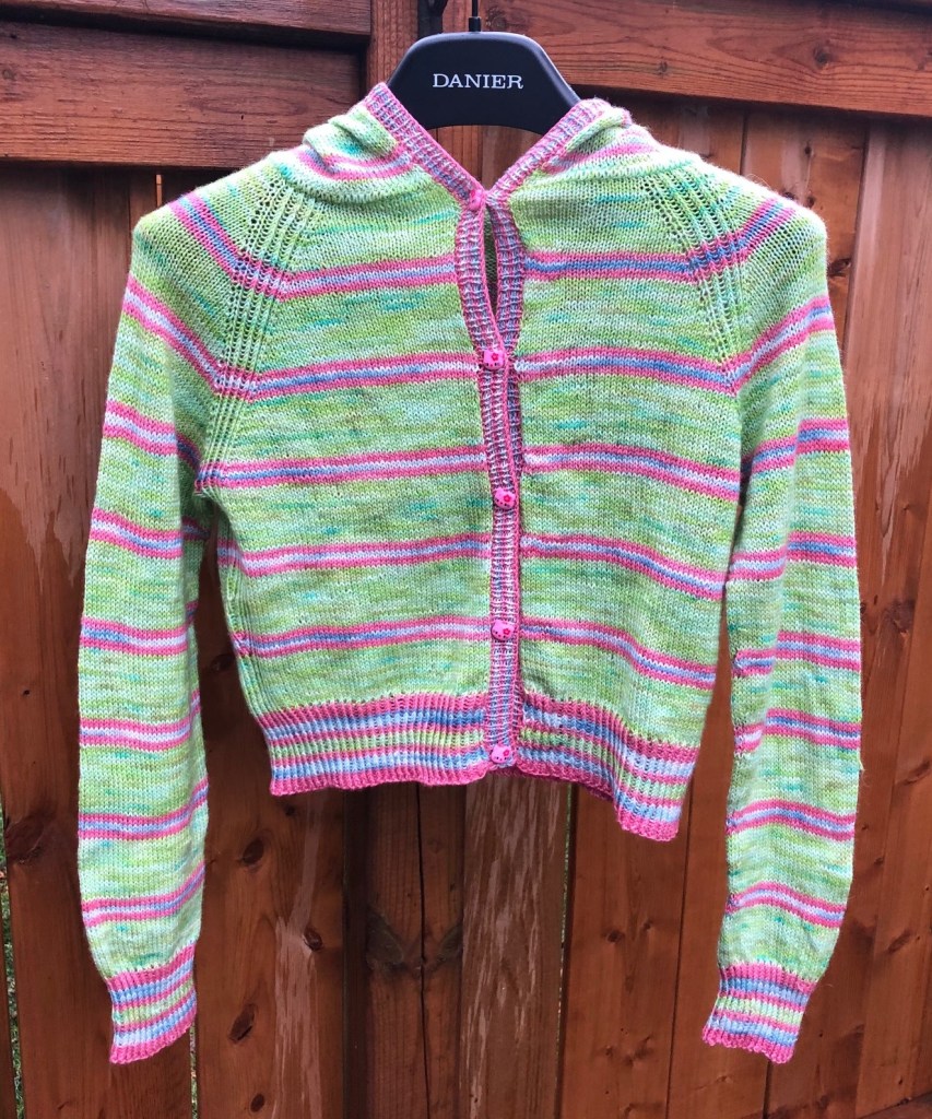 Overall – it’s a pretty basic knit – just a top down raglan. The stripes add interest of course, as does the ribbing at the raglans.