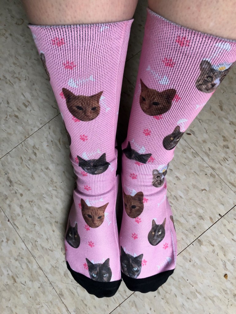 Happy birthday! I love the socks. We did cat socks for the family last Christmas; everyone got socks with their own cat on them. They’re holding up really well, too.