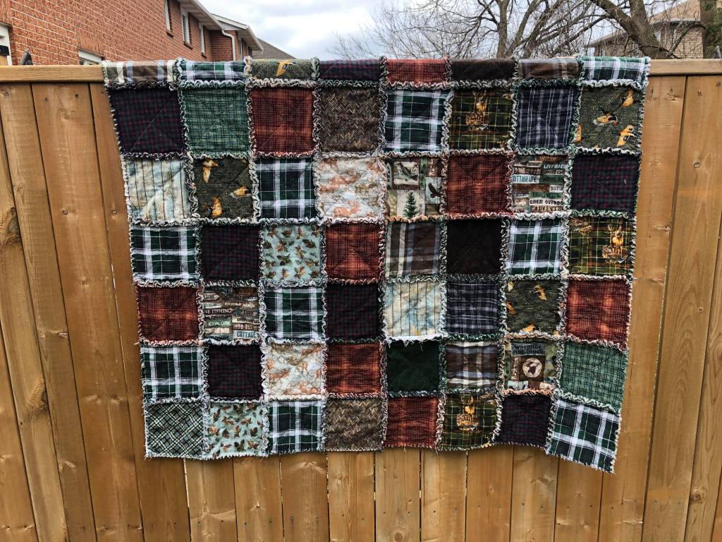 As I was cutting up the leftovers from my brother’s quilt, I realized I still had a fair bit of woodsy flannel leftover…. what about a flannel Rag Quilt? It’s different enough from the quilt Mom is making him.