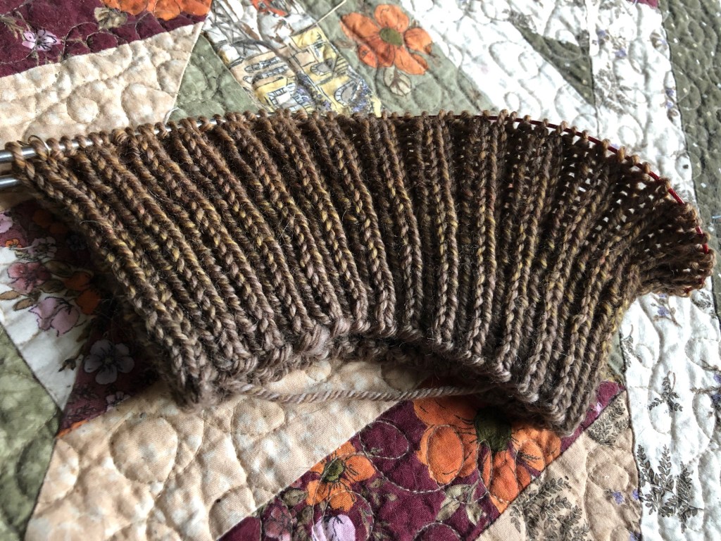I am playing a bit of yarn chicken here, I’m not sure exactly how much yardage was left after the socks were done. But it looks like enough. Here’s hoping!