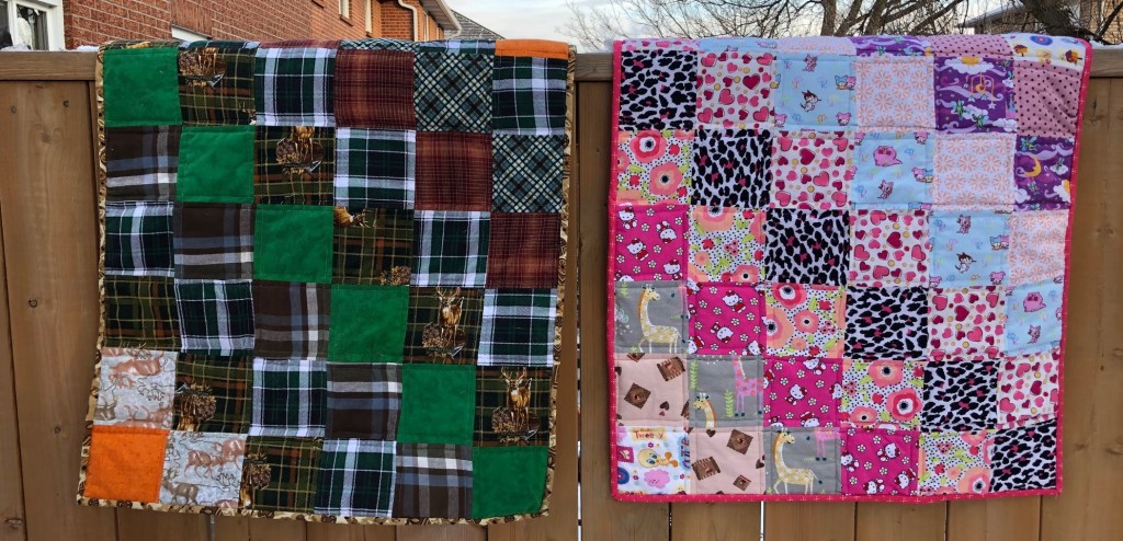 They are adorable!! I need to make napping blankets for my boys, only they prefer to sleep on my clothes! So maybe some discarded clothes can be cut up for squares?