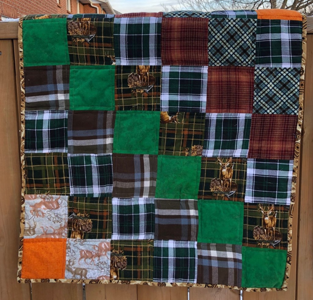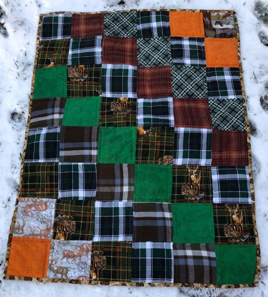 As you may recall… I made my brother a nice flannel quilt for his birthday in December. Or at least I thought I made it for my brother. Someone else had other ideas…