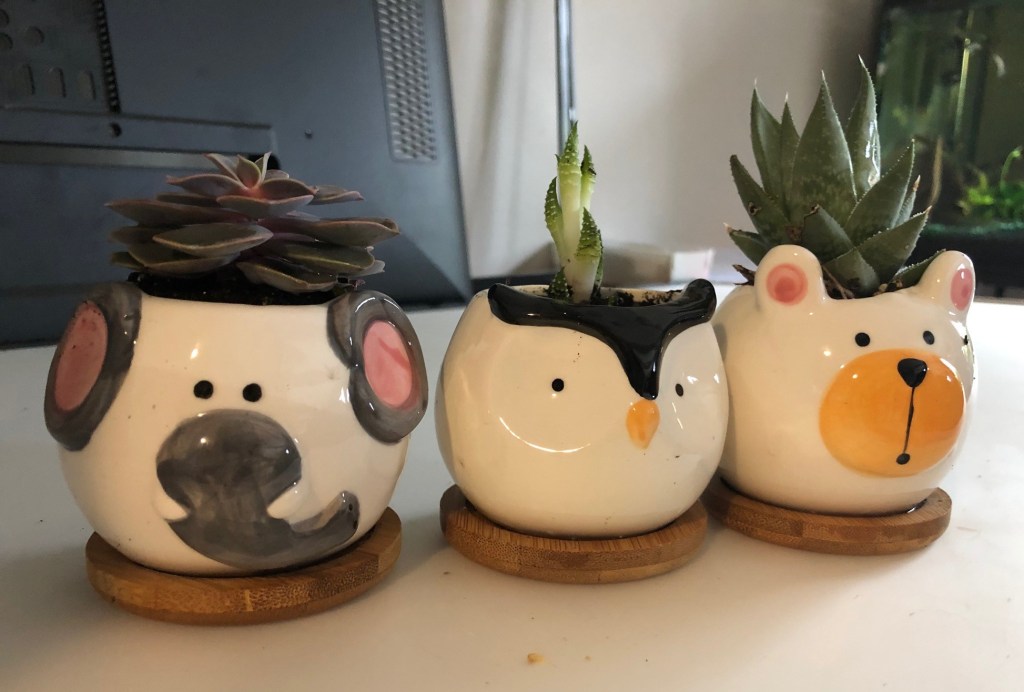 That whale planter is wonderful! Perfect for a bathroom planter. The other three little ones are cute to. The only plant I have right now is a bamboo plant that was given to me today for my birtday on Monday. Any suggestions for care? I always kill succelents and bamboo. I’ve been told it’s impossible to kill bamboo but I manage to do it. Beautiful babies on the plant. .