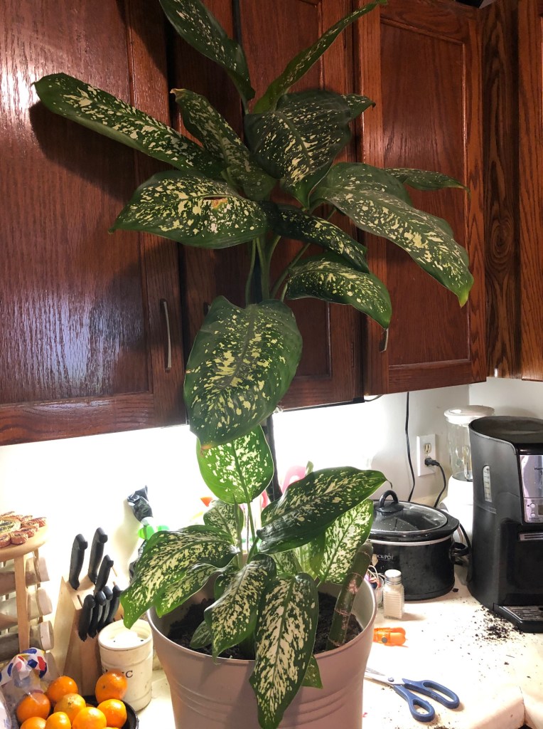 I wanted to repot all the babies on this big beast (which was started as a cutting from one of my Mom’s plants, about seven years ago), but those babies are rooted around the momma so tight and so deep, I’m going to have to depot the whole thing to get them apart. It will have to wait until spring, when I can do it outside!
