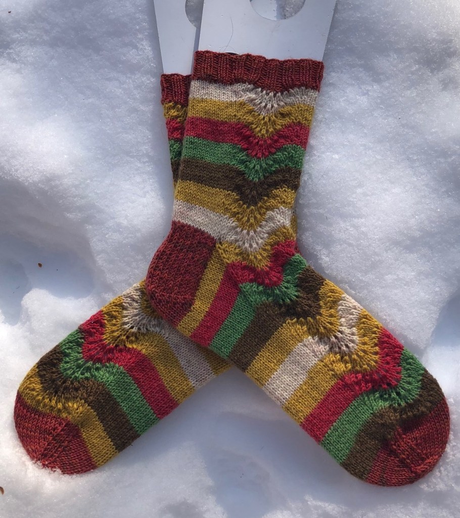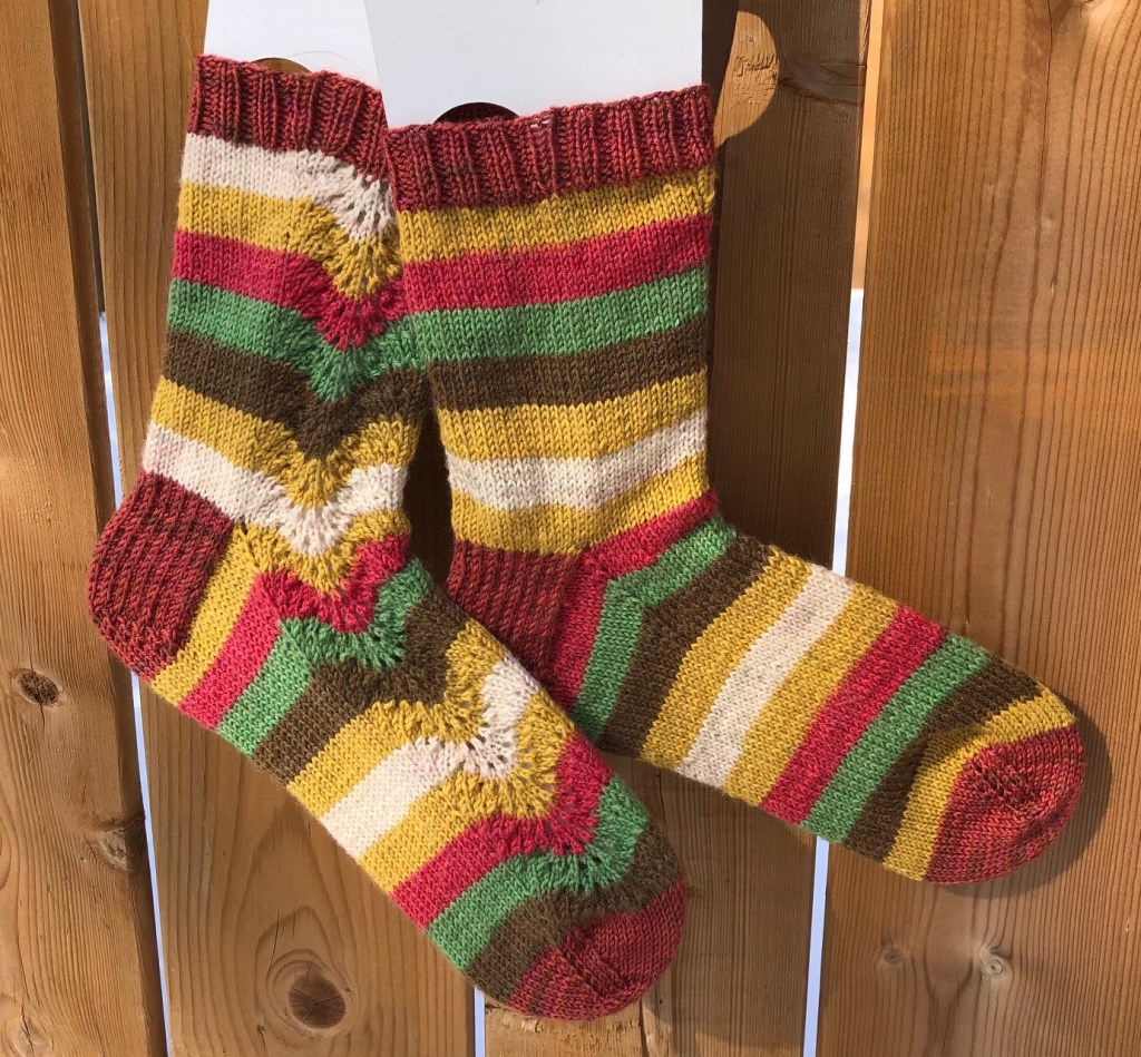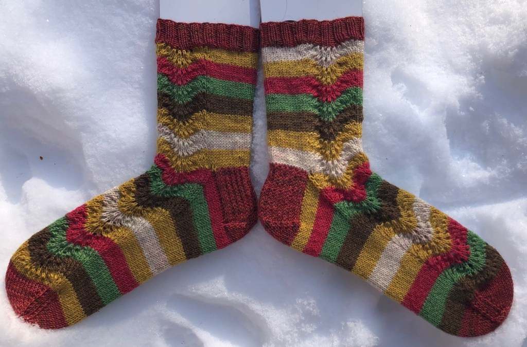 These socks turned out so well Val – love the name of the colorway and that pattern is just super!