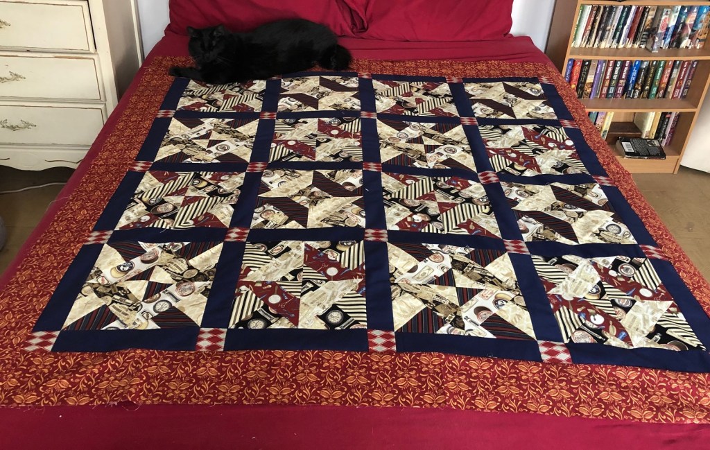I hope you had a good day at the ‘frame’! This is a very striking, manly quilt!