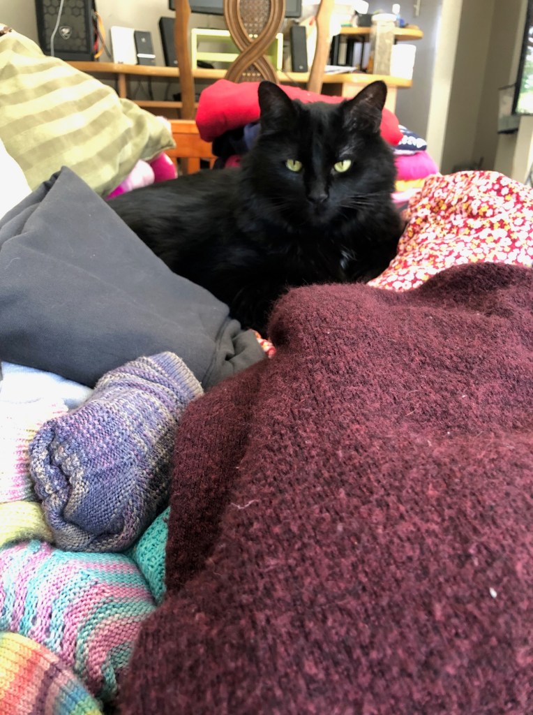 Burton is certainly a photogenic cat! He is just adorable. Warm, soft and fresh smelling laundry makes a perfect spot for cat napping.