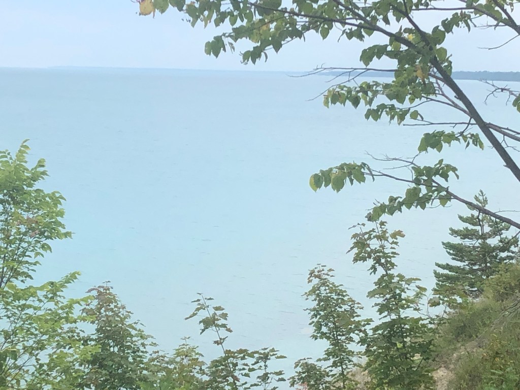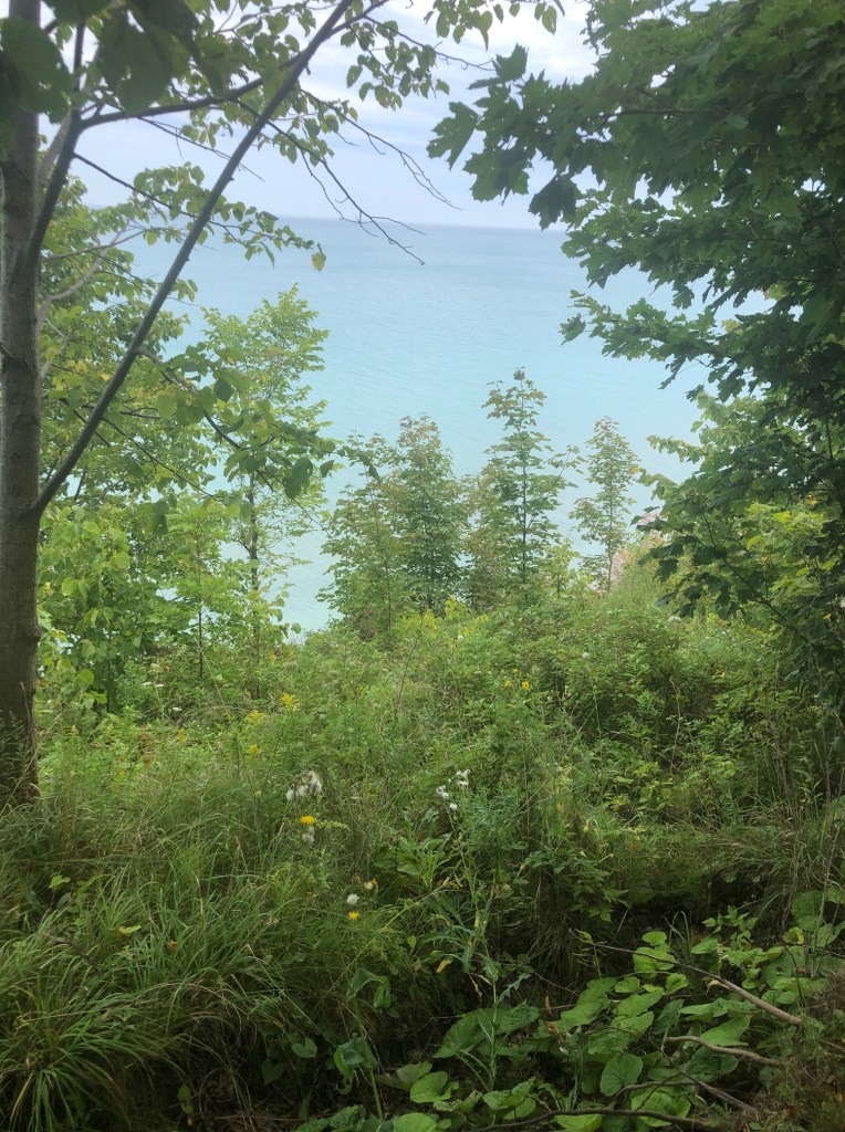 The little parkette we stopped at was actually at the top of a large, sandy cliff – I’m guessing about 200 feet high. Except for one spot (seen above in the last picture) we couldn’t even see the shoreline. In fact, we could only hear the water lapping the shore at that one spot too. The trees and shrubs on the cliff were just that dense. There’s no way we were able to get down to the water’s edge.