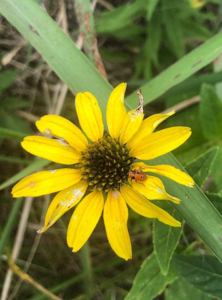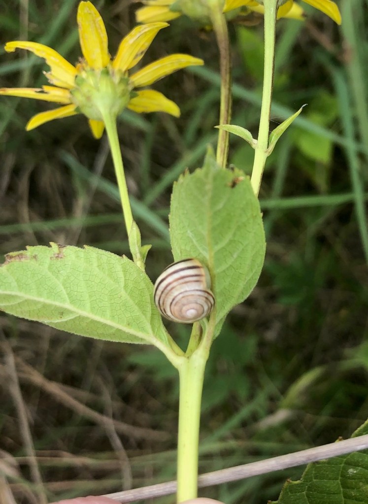 Some pretty yellow Coneflowers! One had an unidentified beetle on it, and another had a little periwinkle snail hiding out from the sun! The flowers were mostly done, so I snagged a few spent heads for the seeds. I don’t have yellow cone flowers for my garden yet!