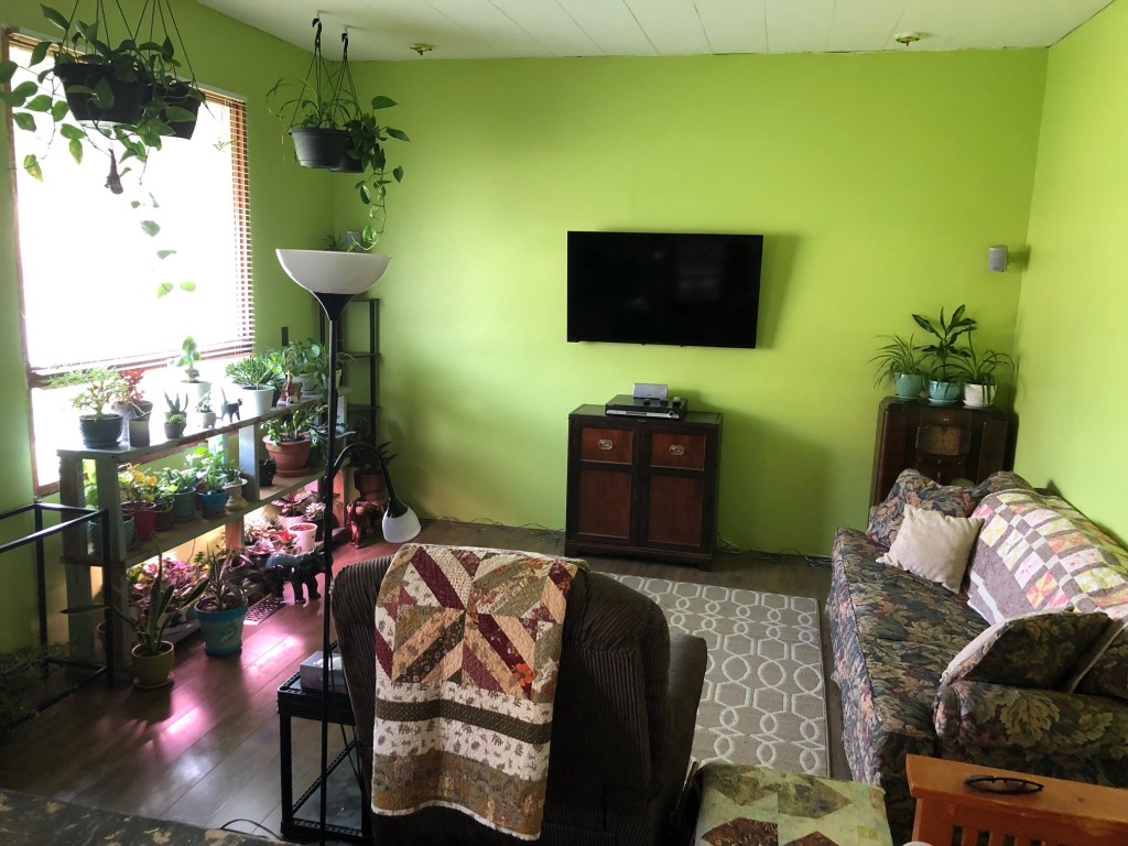 I absolutely love my cheery green walls. To be honest, it’s a little more eye-popping than the plan I had in my head. But I love it! Wit the dark toned furniture, and all my plants, I really think it’s the perfect shade.