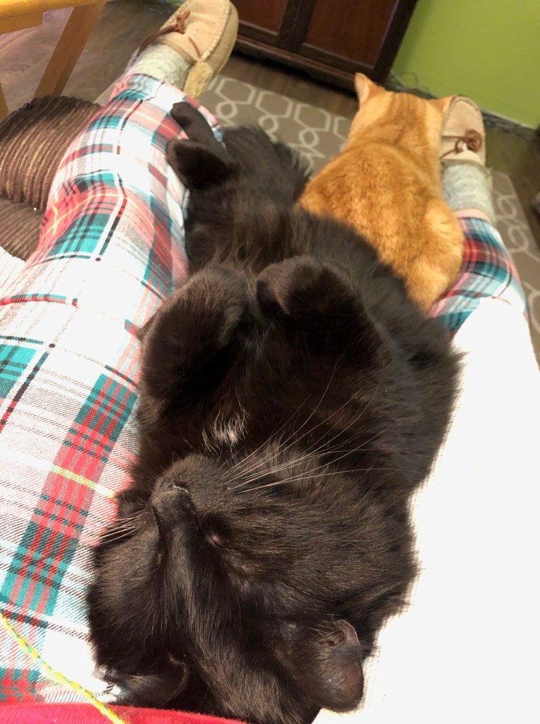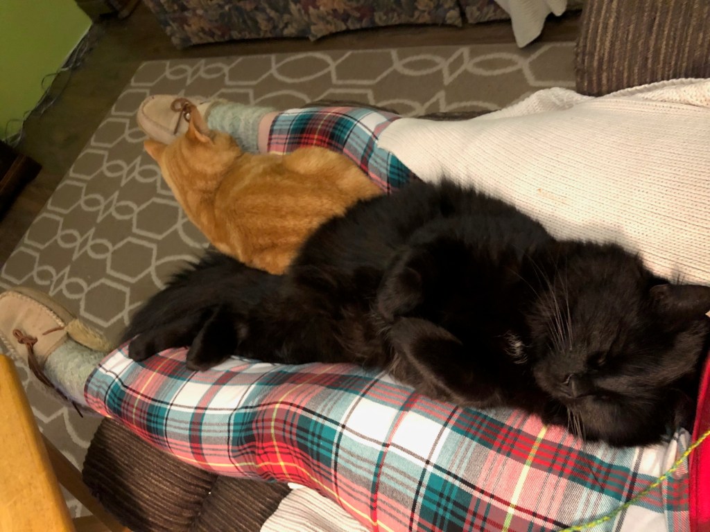 ‘Round here, Da Boyz land on the futon, whether a human is there or not, to be a cat bed.