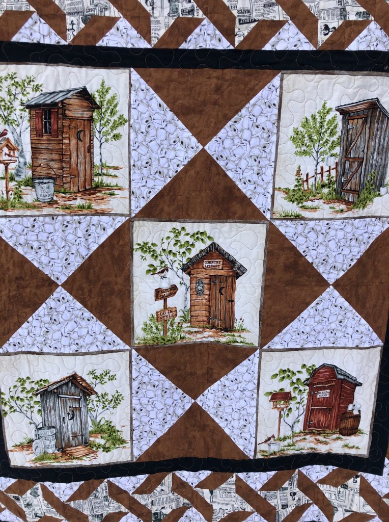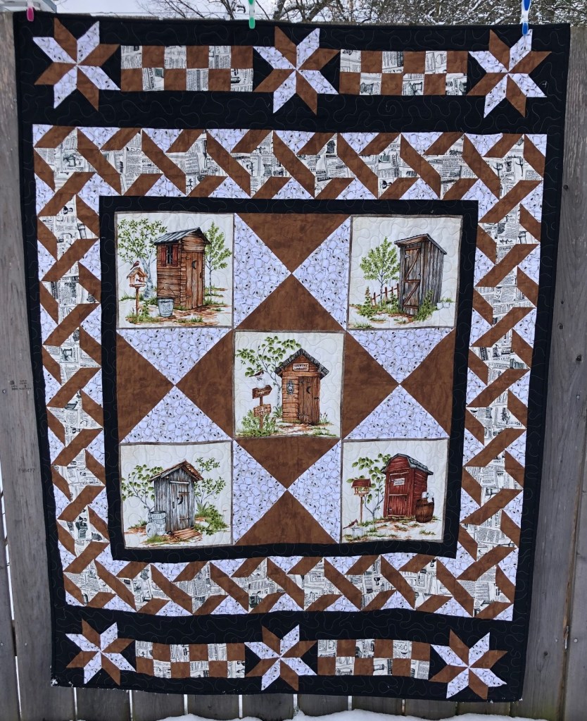 What a wonderful guy quilt! The backing is so perfect. The top and bottom border just add so much to the design. Betting your brother will love it.