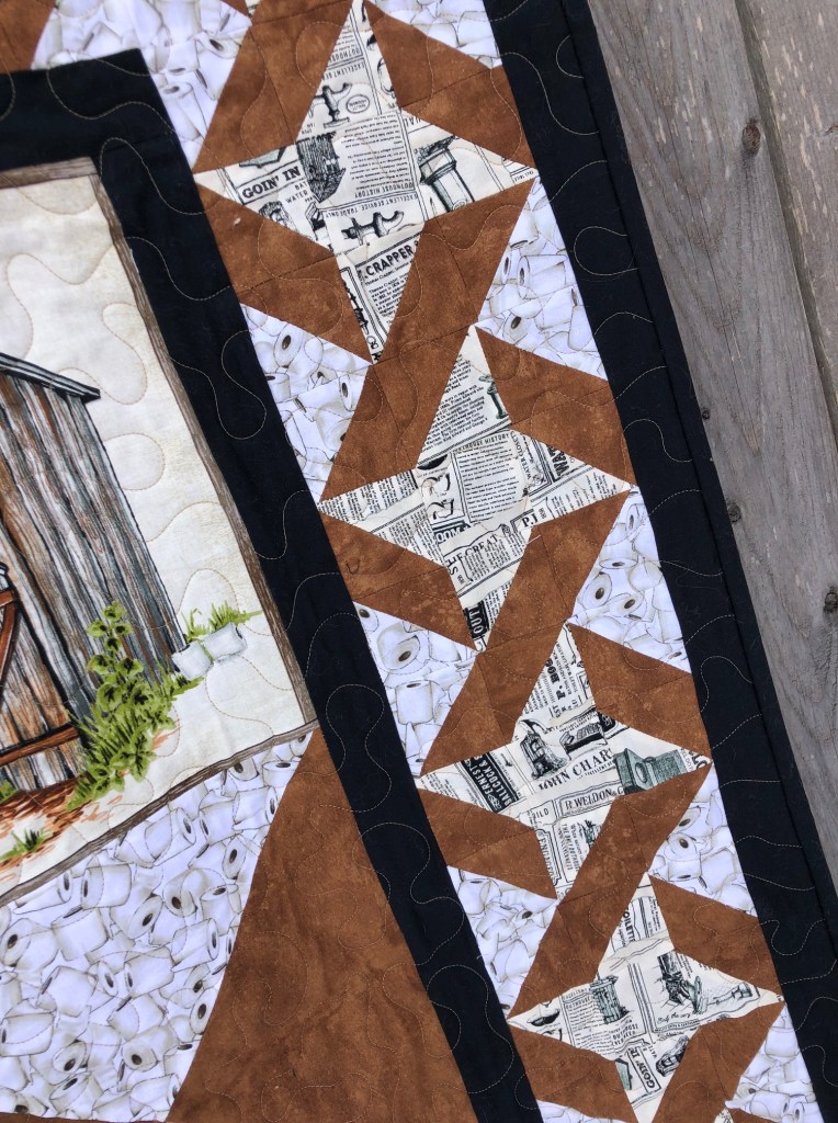 Like yesterday’s star quilt, this one was fun to put together, mostly because of the silly fabrics.