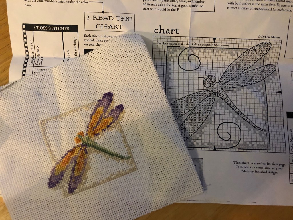 She made the butterfly one, but lost interest. A couple years later, she asked if I wanted the dragonfly. I said I would take it and make it for her. And then I put it on my shelf, and there it sat forever and ever.