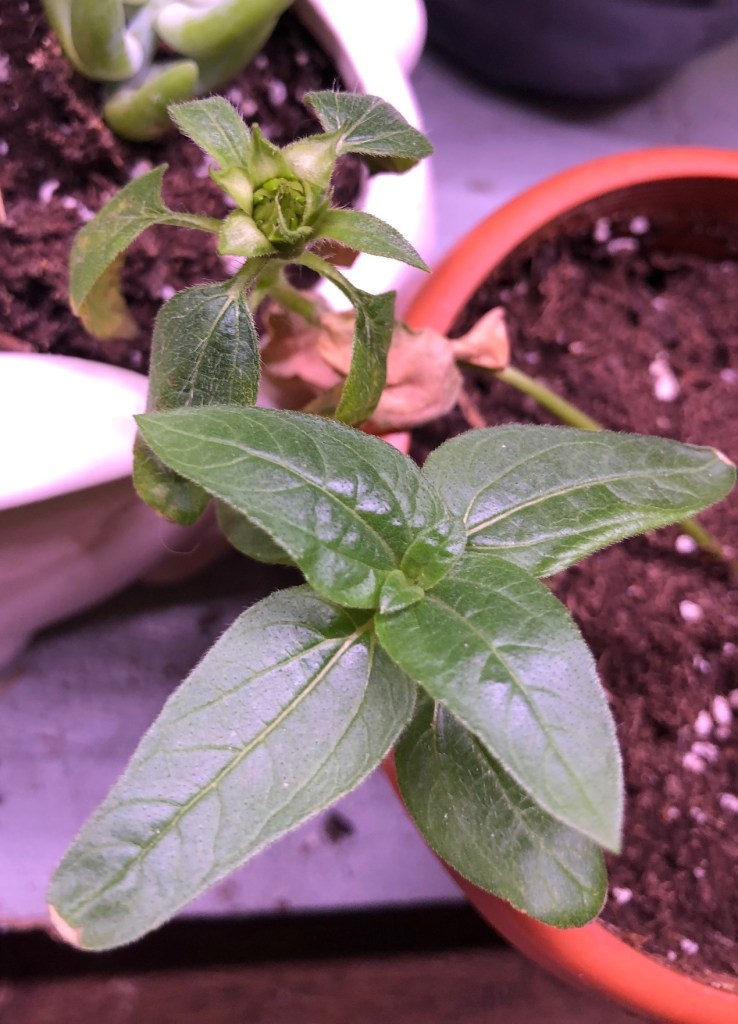 My sunflowers haven;t gotten any taller, but one has gotten bigger leaves. The other, in the back, is starting to yellow a bit…. but if you look closely, it’s got an itty bitty flower head. Time will tell if it will actually blooms.