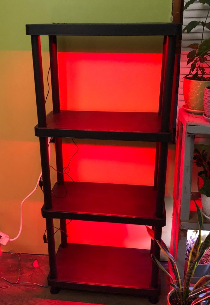 I looked at grow set-ups online, and if you’ve ever done that, you’ll know they can be quite spendy. I knew there had to be a better way to do it. Since what I was looking for was just basically shelves and lights, I decided to buy just that.