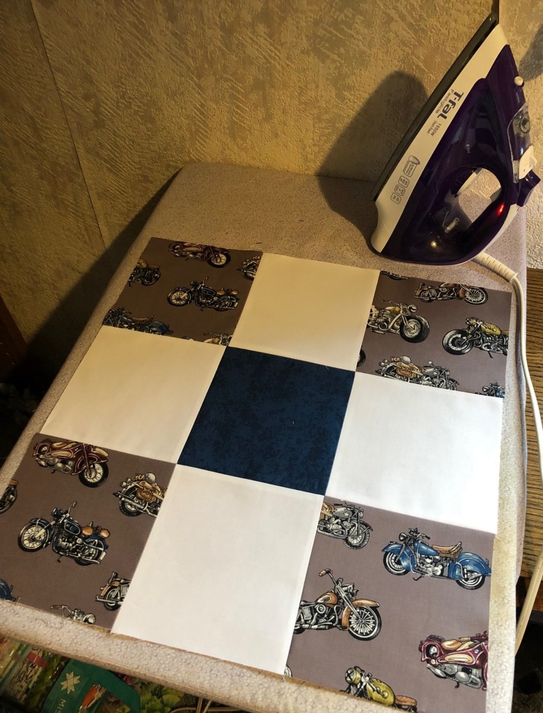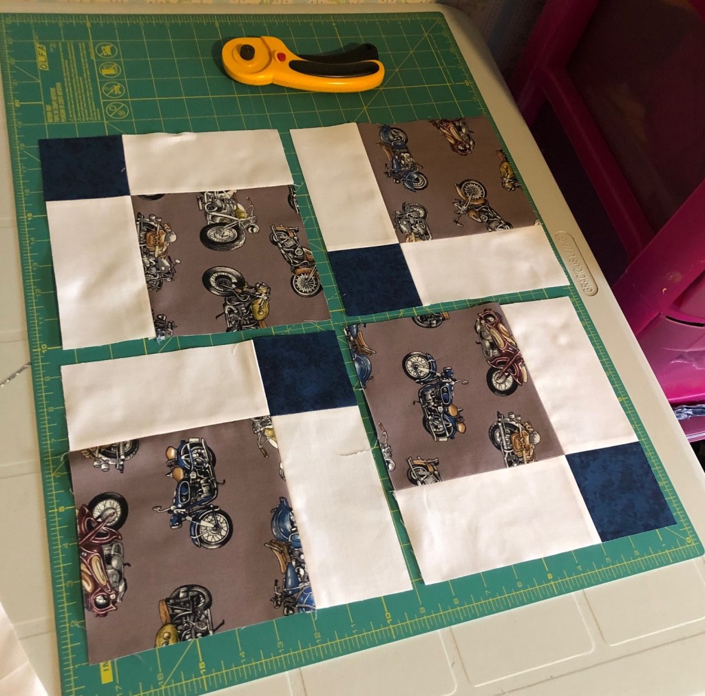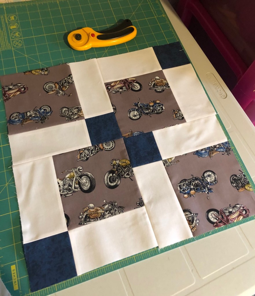 A short while ago, Samantha commissioned me for another quilt. She wanted a motorcyle quilt for her husband, Michael. But NOT a Harley motorcycle quilt… and not sport bikes, but Yamaha blue if I could manage it.