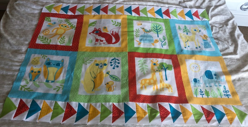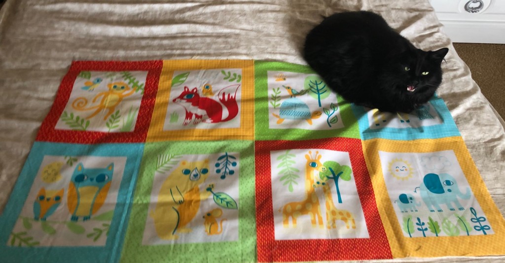 In addition to the baby cardigan, I wanted to make my coworker a quilt to welcome her impending arrival. So when Dave asked me what I planned for my weekend, I told him I was spending it in the sewing studio, and wasn’t coming out!