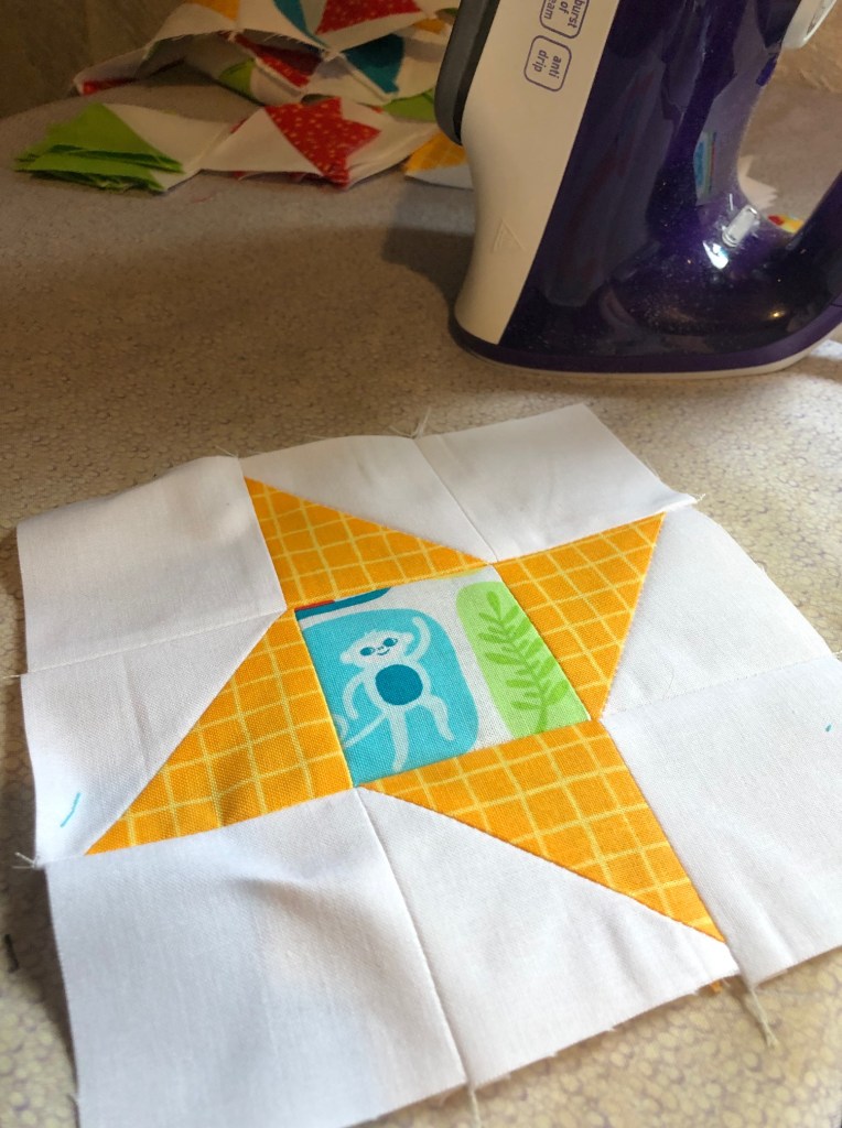 They attached quite nicely together, and then to the panel. If you’re paying attention, you’ll notice that’s only 42 geese…. Before I got to the other 42, I had to make some stars.