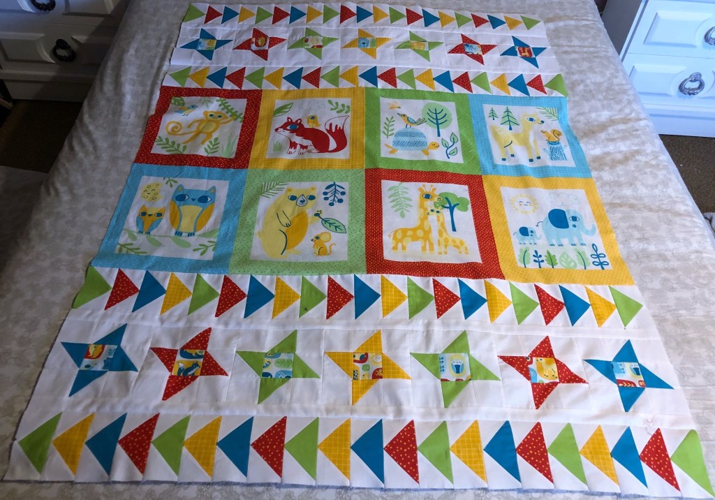 That is just beautiful! Perfect since it’s not gender specific. There must have been math involved in the geese and stars. You are so talented!