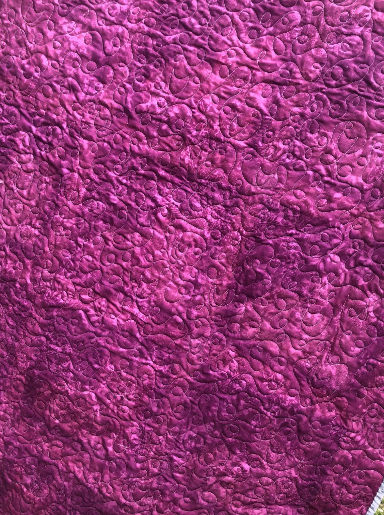 The back is a beautiful burgundy print that the picture does not do justice to. It’s got a subtle flower pattern a little like a batik. I bought it online and didn’t realize there was a pattern at all – I just thought it was a mottled blender. I wish you could see it in real life.