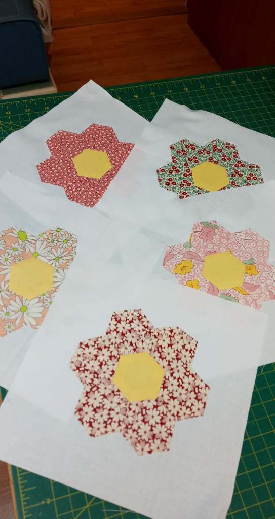 I got a lump in my throat seeing those hexies. How many of those did I sew down for Dad? I’ve lost count.