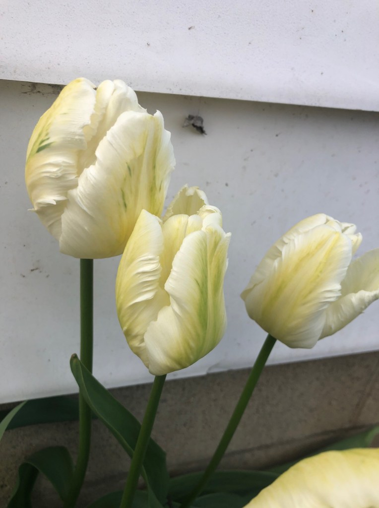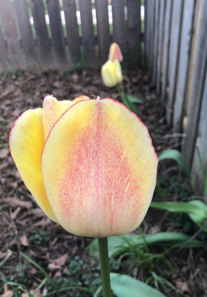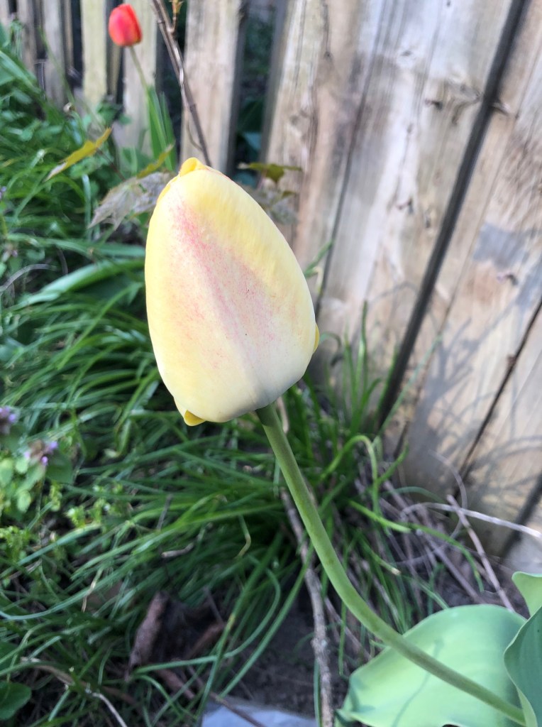 I just love the light frilly cream ones, and the pale yellow with just a little blush. Neither of those were mine, but a pleasant surprise from the previous owners. When they are done blooming, I’ll be digging the bulbs up to plant more strategically this fall.