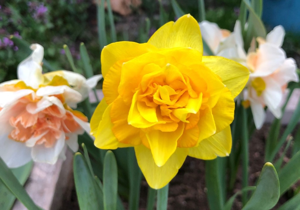 The daffies are still blooming nicely, and I’m happy to see my frilly fancy ones survived the move.