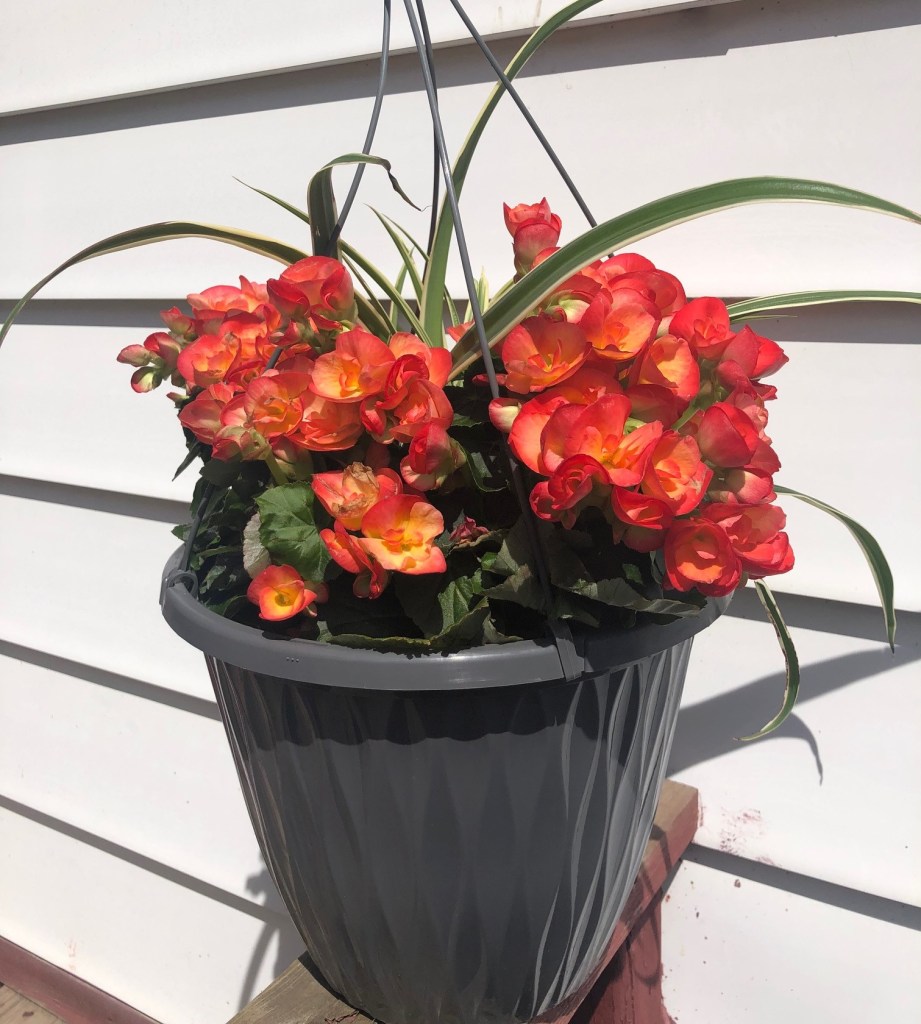 I chose this fiery begonia with a spider plant. I’m keeping it on the sun porch for now, but once we are past the danger of frost, it will hang on the porch at the side door for a nice pop of colour.