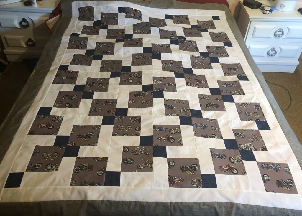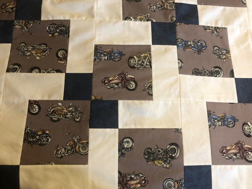 Capping off my productive weekend was the completion of the top for the motorcycle quilt.