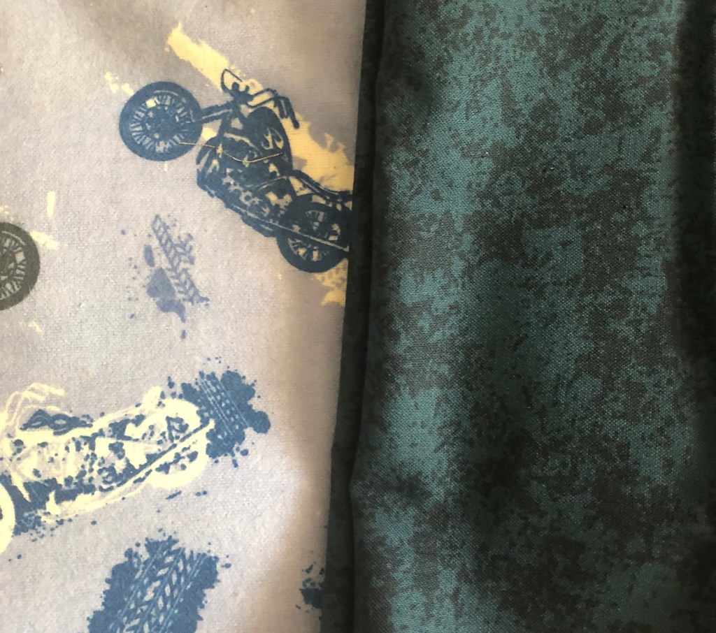 And I found some great blue motorcycle flannel for the back! Now that this is in the to-quilt pile, I’m going to turn my attention to getting the Leader/Ender stars into a top too!