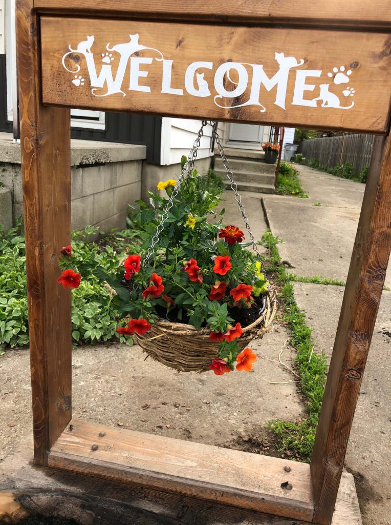She’s toward the back, and eventually she’ll grow tall enough to be the focal point of the garden. For now, I’ve got my welcome sign at the back, as something to draw the eye.