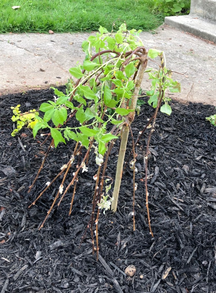 My plans were to make it something of a wildflower garden, with coneflowers, daisies, and susans and the like. Earlier this year, I tried to dig out what remained of the cedar stump. It resisted all my efforts. And I noticed, that while it didn’t regrow last year, the Euonymous was now growing back. I decided to give my plans a little rethink.