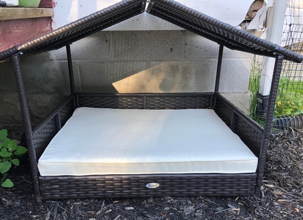 So… I splashed out on a piece of outdoor cat furniture. Yep.. that’s right, they make outdoor furniture for cats. Well technically, it’s for dogs… but whatever….