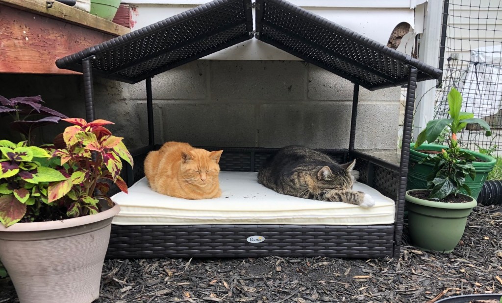 That’s one great bed! That would also be great inside as I have learned the hard way the advantage of having waterproof beds that can be wiped clean. We had to ditch all of ours with the mite issue and I’m not sure what I am going to replace them with this winter. Right now the inside cats are happy with just a little kitty blanket on the floor. That’s not going to fly when it gets cold.