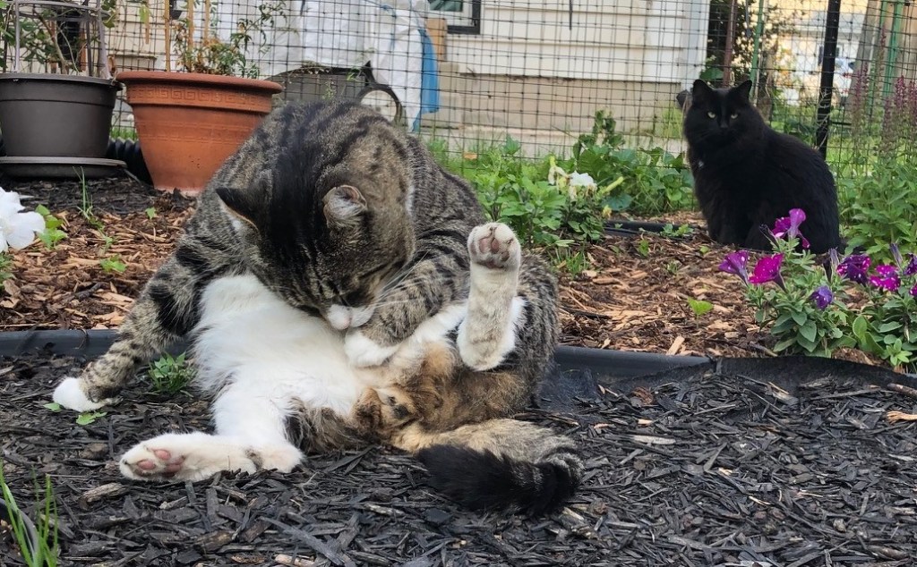 You may recall that when we lived in the townhouse, Relic had a habit of striking some rather… risque… poses while cleaning himself. Usually in full view of the neighbours.