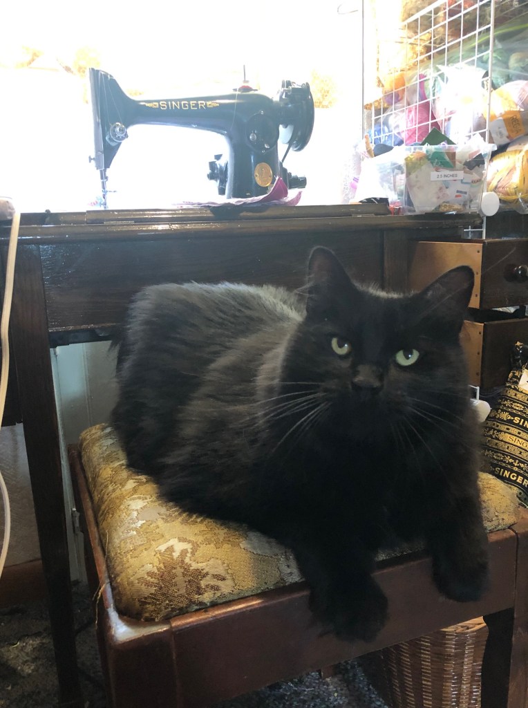 We haven’t been in the studio since we sewed last month’s block, and I think he was missing the treats he gets from posing for pictures with the blocks.