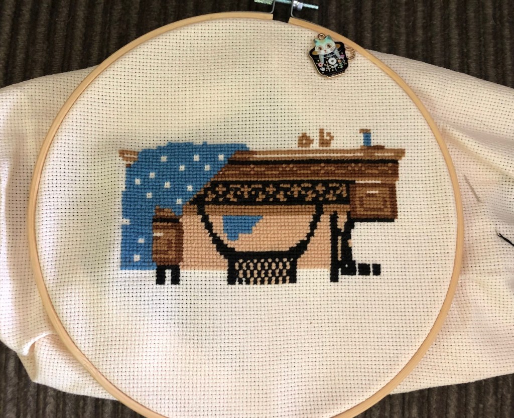 More progress was made on the sewing cat cross stitch, despite a certain someone’s best efforts.