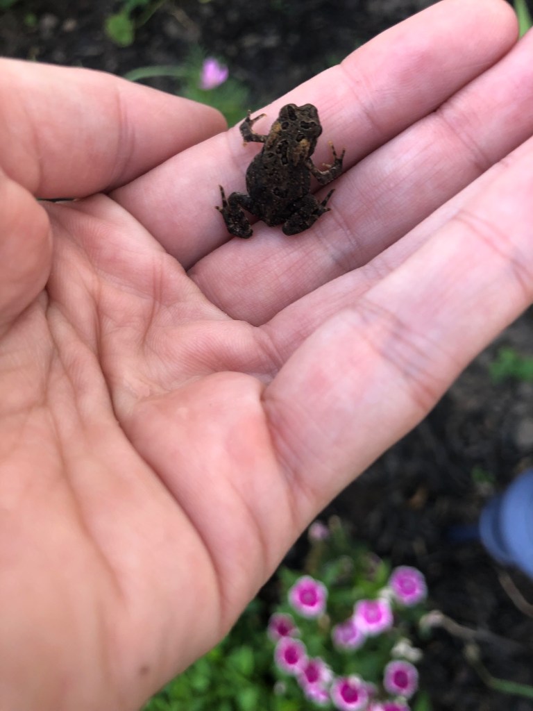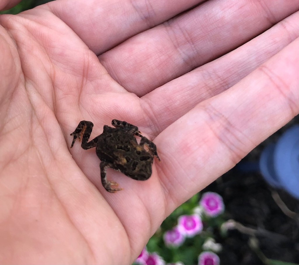 It was hard to get pictures of him before he hopped out of my hand and disappeared into the garden.