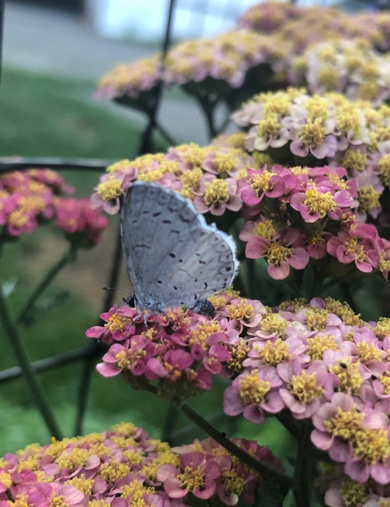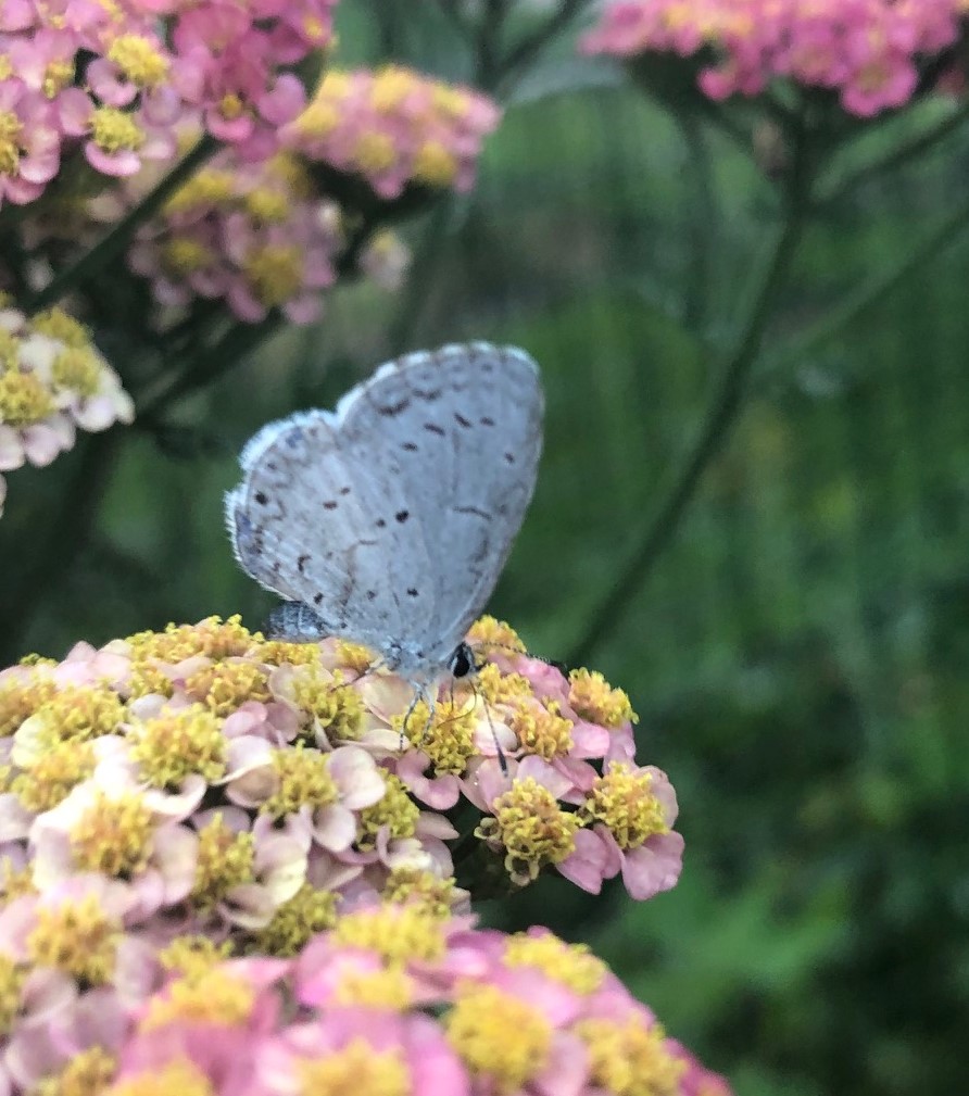 This guy was also very tiny. He’s a Summer Azure butterfly, and he was about the size of my thumbnail. He was very interested in the snack he was getting from the Yarrow, making it pretty to get pictures.