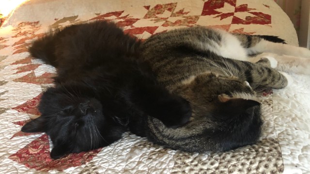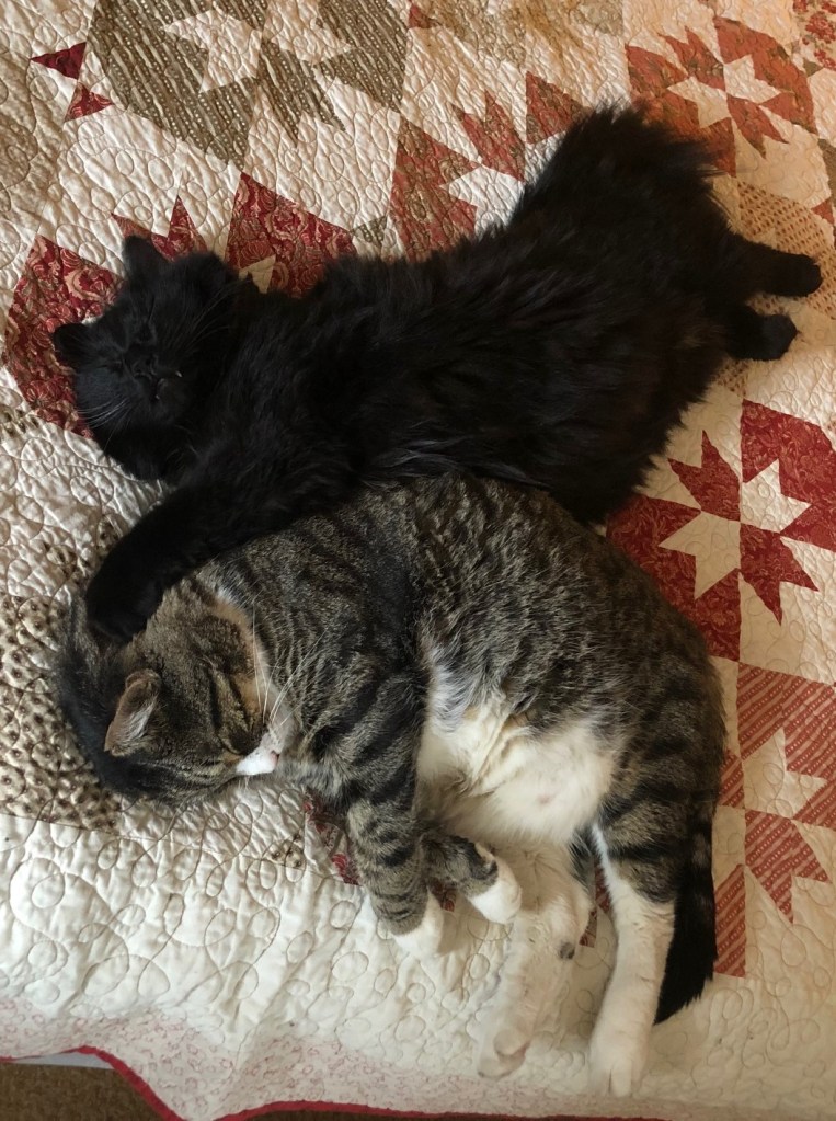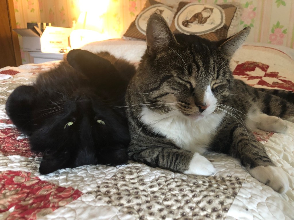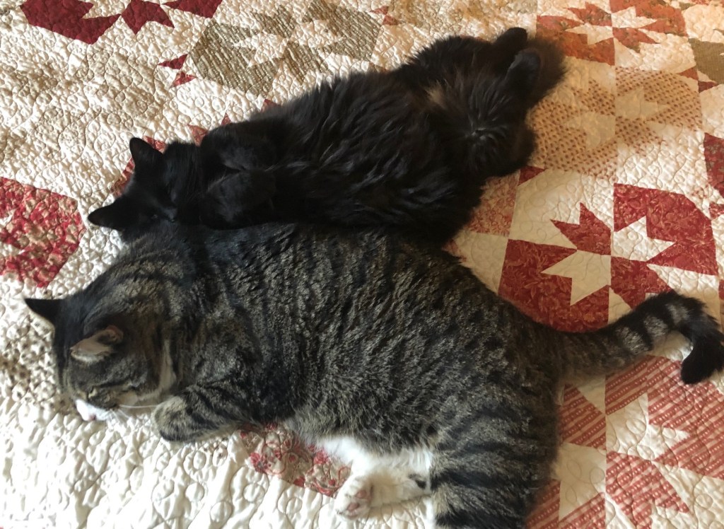 Despite always getting along with each other, it’s unusual to see Burton and Relic snuggled up and sleeping. But on the rare occasion they do…. it’s hella cute!