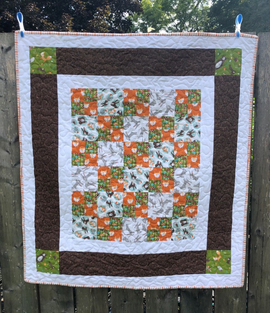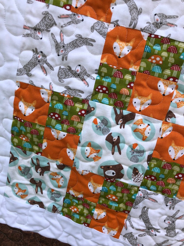 Such a FUN quilt. I love the foxes!! This is adorable and will brighten up a little baby’s crib.