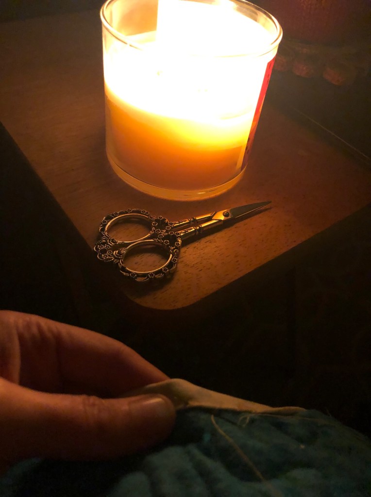 Oh, gee….it’s hard enough to see when the lights are on. I do recall knitting by candlelight during our week long power outage from the ice storm but my eyes were 20 years younger.